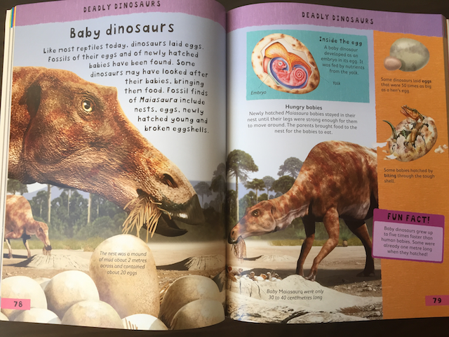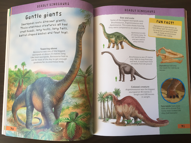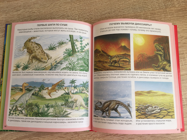 Именно про динозавров в ней всего пара страничек, но вообще энциклопедия очень хорошая, именно на возраст 3-5 лет. Отличные рисунки, информации немного, зато по многим темам. Мы читаем ее и, когда нужно посмотреть что-то конкретное, и просто - все подряд. Настя сама с удовольствием рассматривает иллюстрации, быстро запомнила основные факты и пересказывает их.