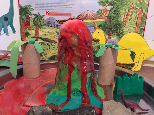 Очень большое впечатление на дочку, да, и честно скажу, на взрослых тоже, произвел самодельный вулкан. У нас в этот день как раз были родители мужа, так они с не меньшим восторгом, чем Настя, следили за "извержением":