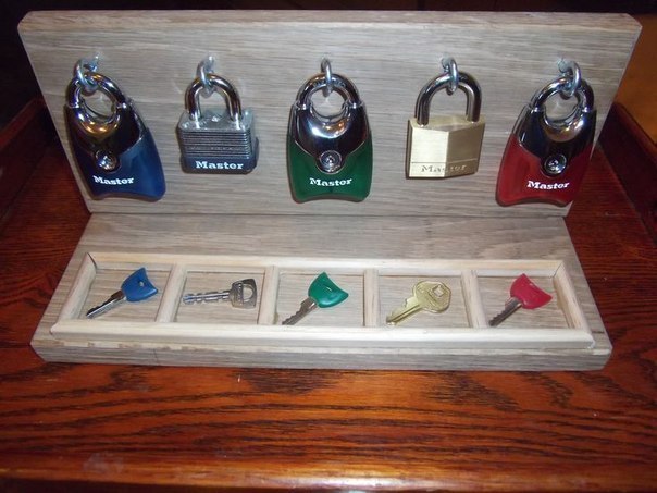 Или типа таких штук, чтобы подобрать подходящий ключ/ болотик. Моторику развивают и интересно.