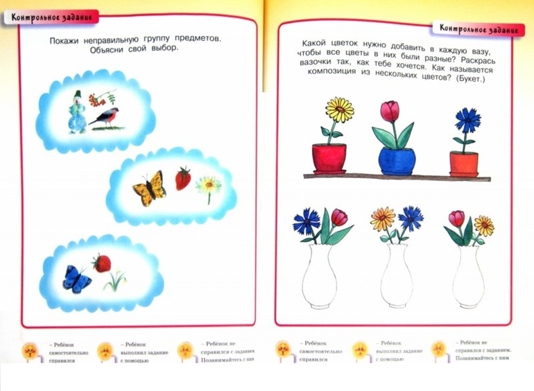 Короче: покажи неправильную группу предметов. Мы решили, что это первая картинка, потому что там зима. Хотя, с другой стороны, ну какой ребенок подумает, что зимой есть ягоды. Даже я не видела рябину зимой.
