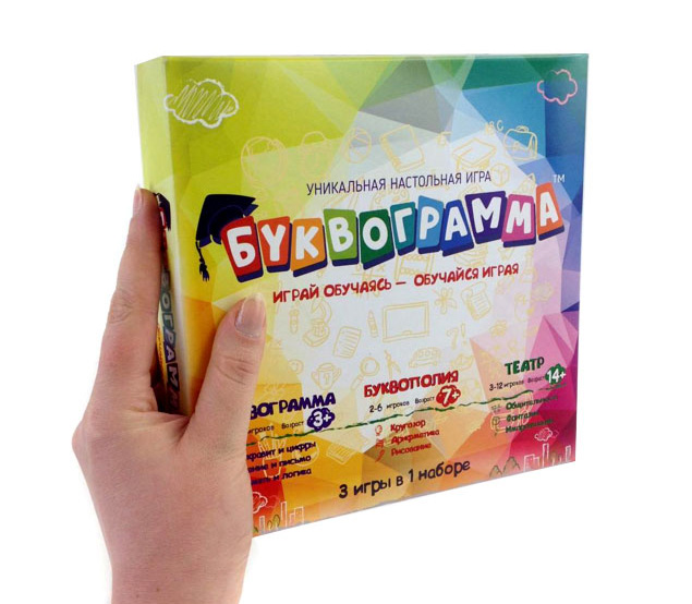 Большим преимуществом детской игры «Буквограмма» является то, что в набор включены целых 3 игры, которые рассчитаны на разный возраст: