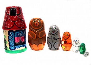 Как только наши друзья узнали про нашу любовь к Теремку, у нас появилась матрешка теремок. Впечатление неоднозначное, тк я привыкла к обычным матрешкам в виде собственно матрешек. Но сынуле она вроде понравилась