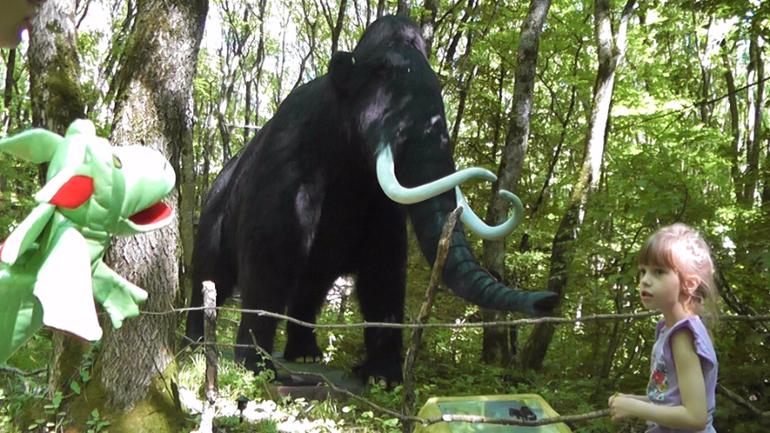 Скажу сразу, что это наша третья вылазка в доисторический мир. Первый раз мы посетили его сразу после открытия, а Полине было 3 года. Конечно, для нее вход был бесплатный. Но у ребенка возник такой страх и ужас от кричащих со всех сторон громадных зеленых существ, что мы мгновенно выбежали, не рассмотрев даже детскую площадку и песочницу. Стоит сделать ограничения по возрасту или рекомендации. Когда мы попали туда через год, было уже не так страшно и даже прикольно, хотя сыро. Там очень густая тень, а после дождей все долго сохнет. А в этом году приятно удивило то, что появились новые динозавры. На официальном сайте парка не все показано, карта старая. Появилась композиция с велоцирапторами и игуанодоном. А также появился самый красивый, на мой взгляд, динозавр - дилофозавр. А еще мамонт!! Понравилась композиция «Птичка с яйцами» - Птиродактель с яйцами в центре болота. По пути можно сфоткаться с 3D картинами или с картиной с вырезами под голову. На фоне огромных динозавров в лесной гущи мы встретили маленького овираптора с малышами. Масса впечатлений. Хотя нам пока в этом возрасте больше нравится игровая зона. Там 2 бесплатных батута и детский городок. В следующем видео сделаю обзор.