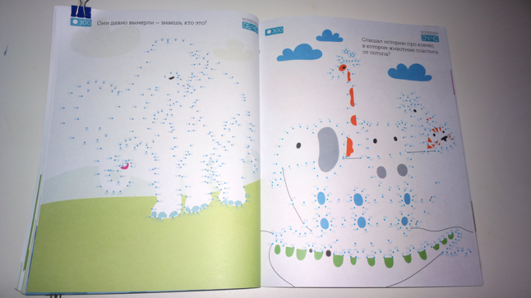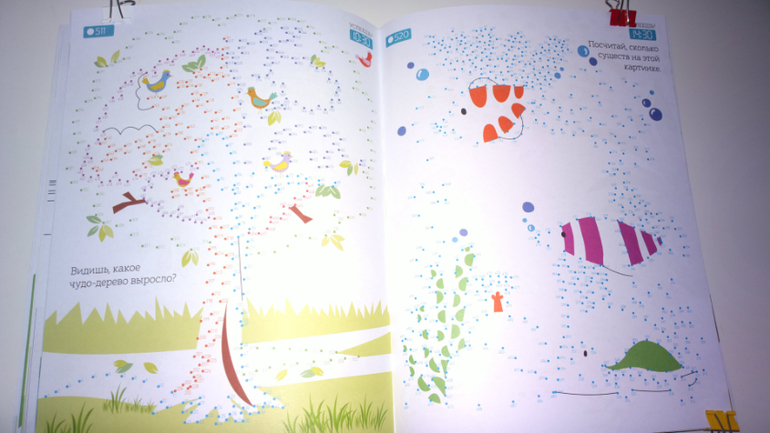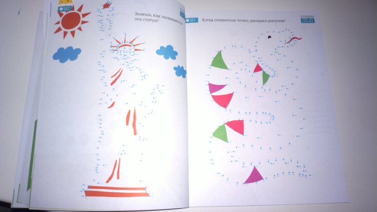 Если в самом начале пособия ребенку предлагается соединить 88 точек, то к концу количество точек возрастает до 1,000! Наш ребёнок несказанно рад такому количеству точек!