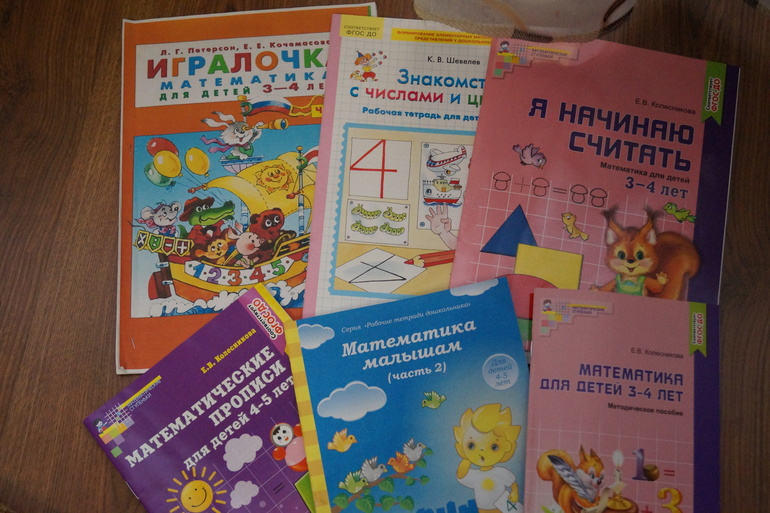 Сейчас мы занимаемся математикой по пособию Е.В.Колесниковой Матиматика вокруг нас. 120 учебно-игровых задания для детей 3-4 лет. Я считаю,что это одно из лучших пособий для этого возраста.