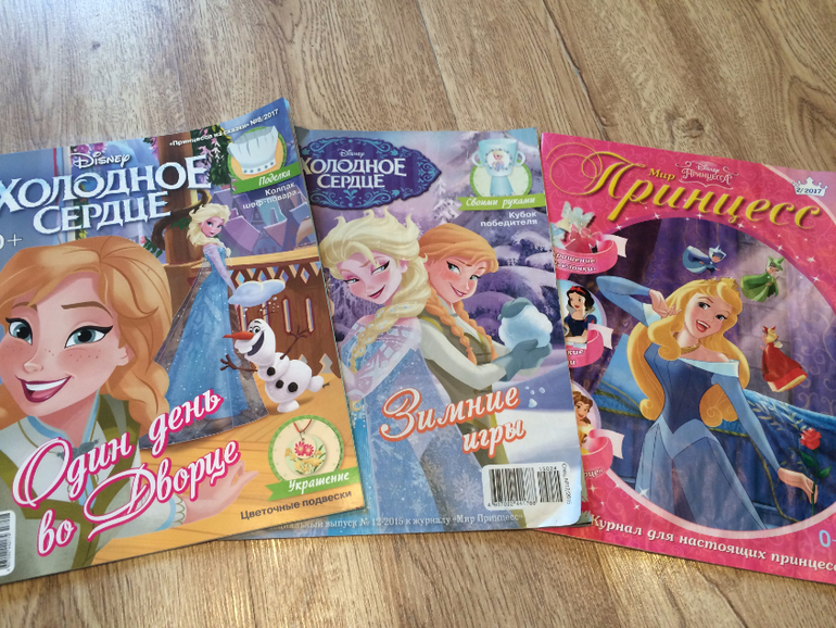 А вот журналы про принцесс - ХОЛОДНОЕ СЕРДЦЕ, ПРИНЦЕССЫ ДИСНЕЯ, СОФИЯ ПРЕКРАСНАЯ, и не совсем принцесса ДОКТОР ПЛЮШЕВА - как раз дочке по возрасту!