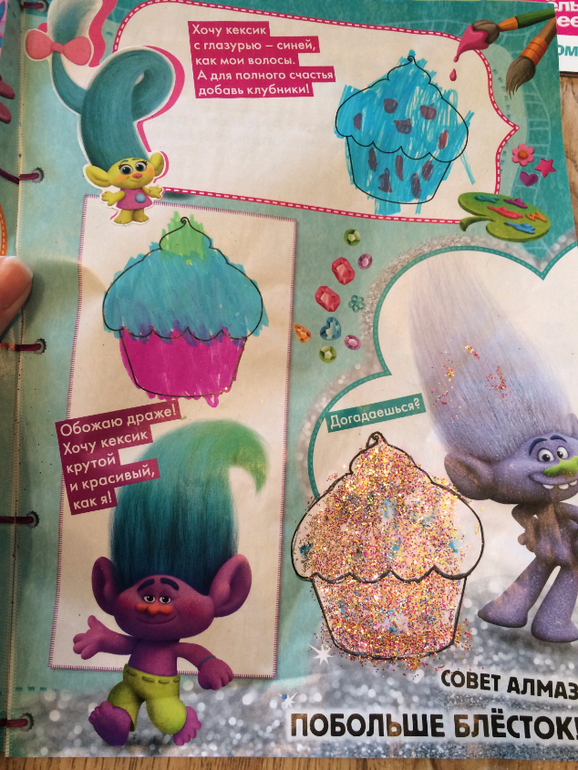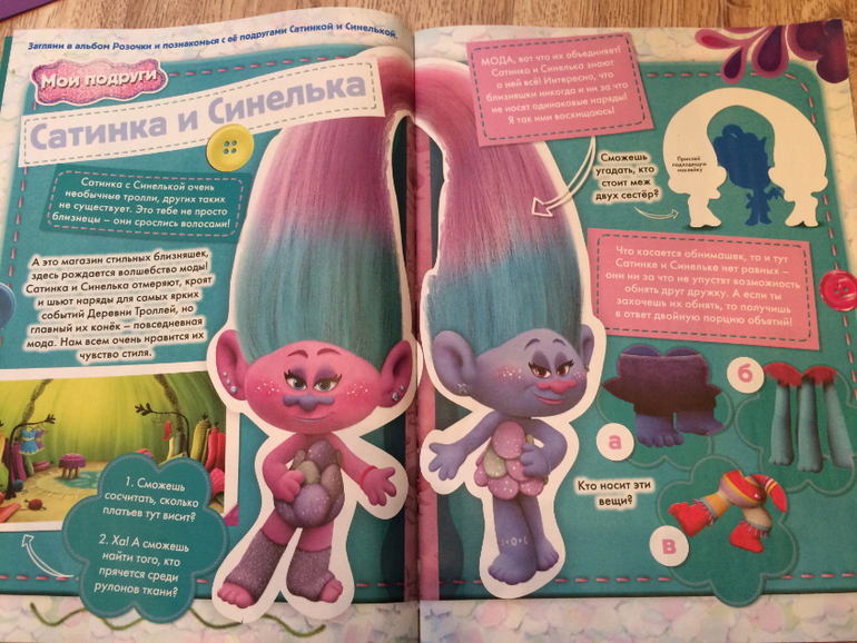 Помимо плакатов, к "Троллям" прилагаются всеми любимые наклейки ,часть из которых нужно разместить в журнале, а часть - приклеить на свое усмотрение (наш шкаф - это троль-шкаф!