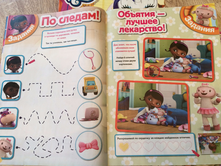 В одних журнала есть плакаты на разворот, в других игры, а в докторе Плюшевой - большая раскраска!