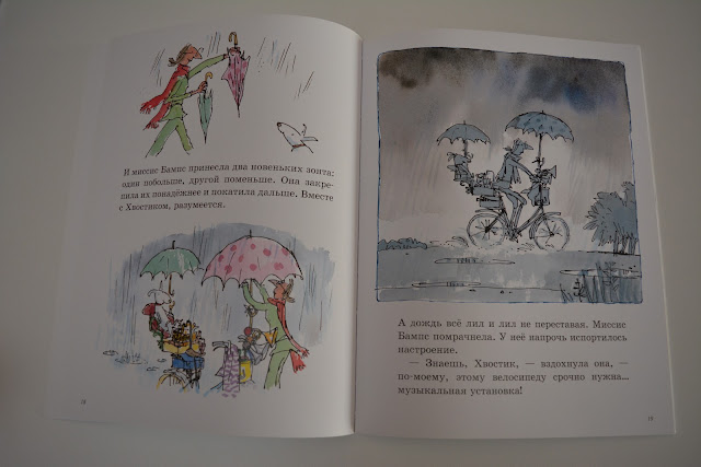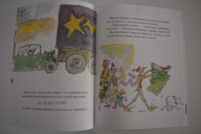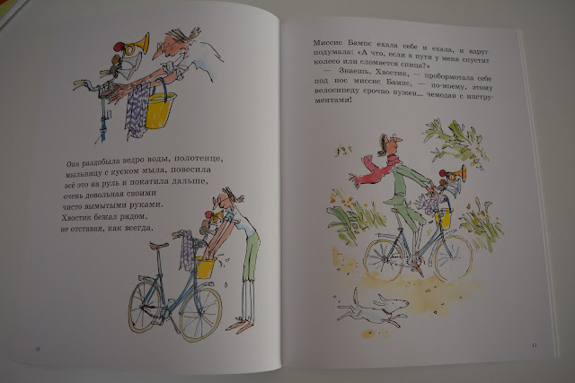 Я люблю такие истории, смешные на грани абсурда. Миссис Бампс катается на велосипеде, но ей все время чего-то не хватает. То гудок добавит, то зонтик, то корзинку. В конце концов велосипед превратился в совсем уж удивительный транспорт - не мудрено, что он развалился! Но чудачка не расстроилась, а купила ролики. Которым, кажется, тоже чего-то не хватает...