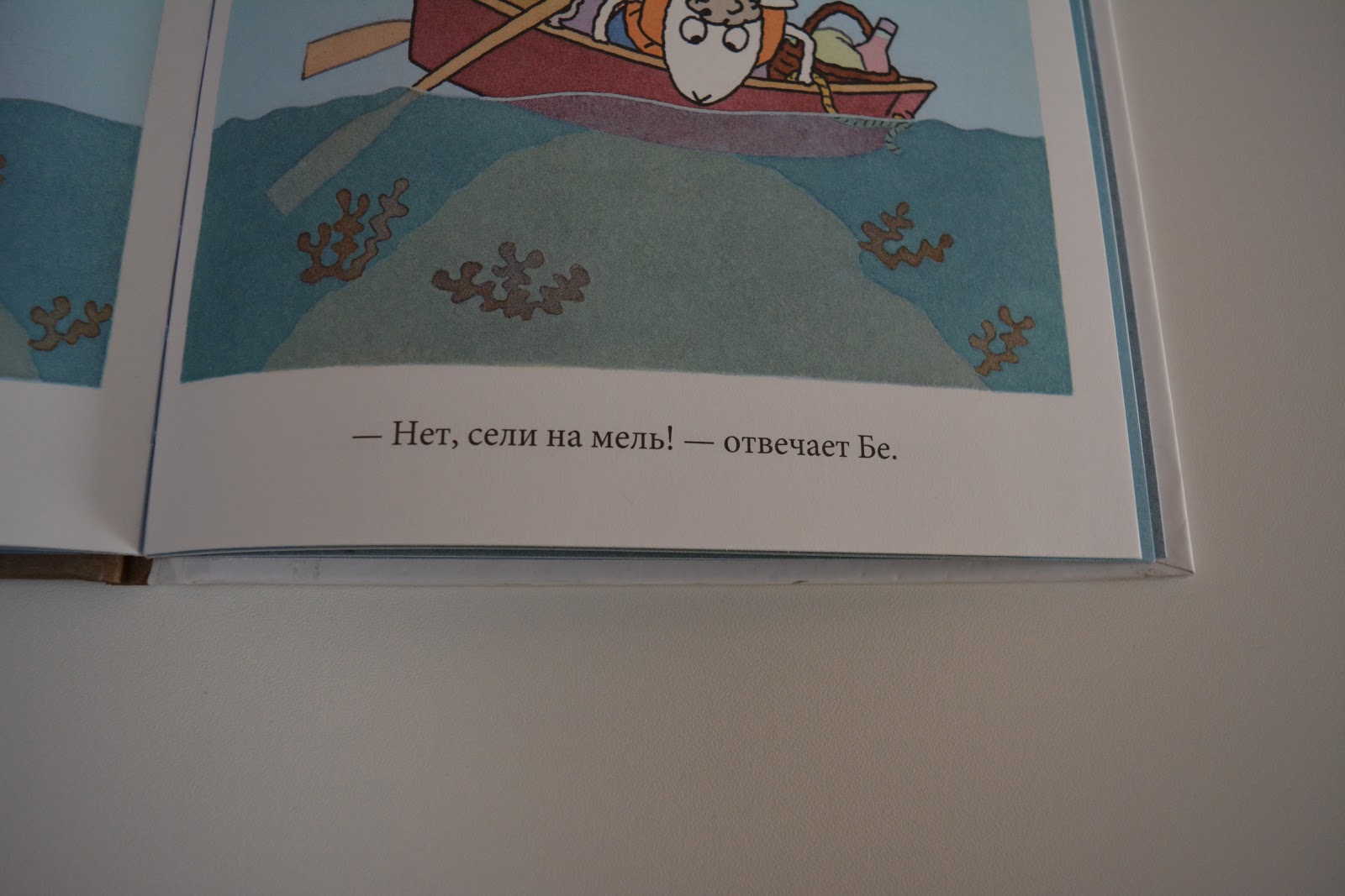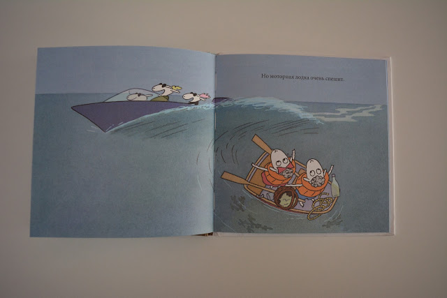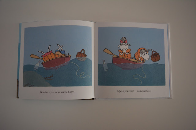 В этой истории веселые барашки Бе и Ме садятся в лодочку и отправляются на пикник. Сначала у них не получается согласованно грести, потом они застревают на камне.
