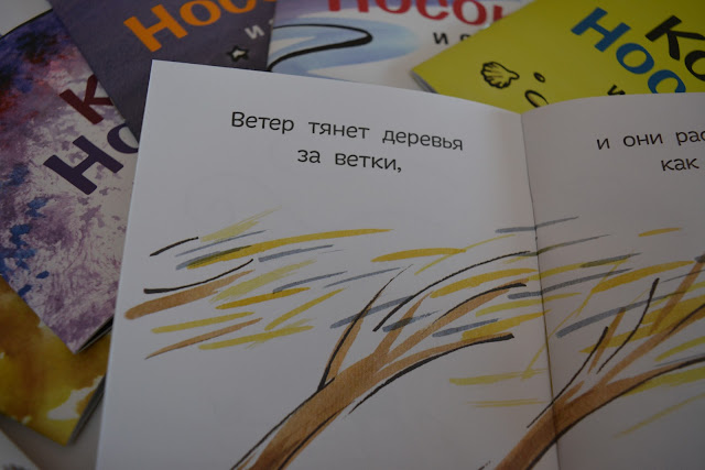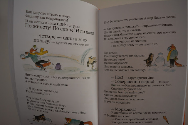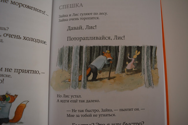 С этой историей я, к сожалению, промахнулась по уровню, текст крупный, и его не очень много на странице (хотя то пусто, то густо), но сама история довольно длинная. Влад самостоятельно еще не осилит. Я хотела припрятать эту книгу на будущее, но Влад ее сразу заметил и выпросил, так что я сама ему читала, очень понравилась, надо купить другие.
