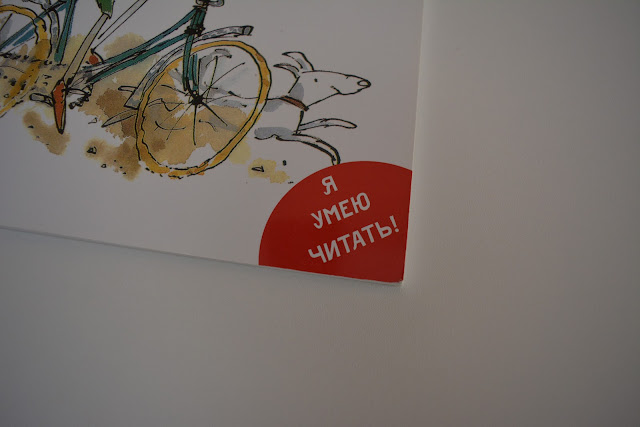 Теоретически у нас с Владом все должно было сработать, по уровню книга простая! Развороты устроены по одному принципу - огромная картинка и буквально строчка простого и понятного текста. Но Влад тут же отказался читать, т.к. ему не понравился размер букв. Он может, и нормальный, но видимо, по соотношению "картинка" - "текст" кажется мелким.