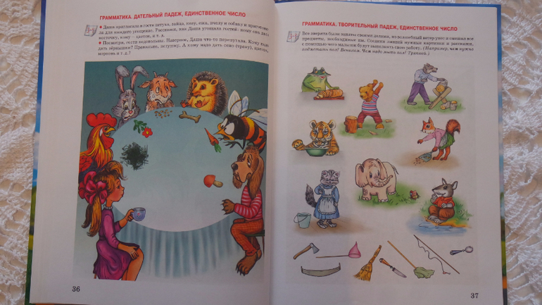 Материала в книге много. Я не любитель маленьких книжечек , типа Развитие речи для детей 3 лет, Грамматика для детей 4 лет...Я люблю, когда книгу можно положить на колени). Вернемся к содержанию: