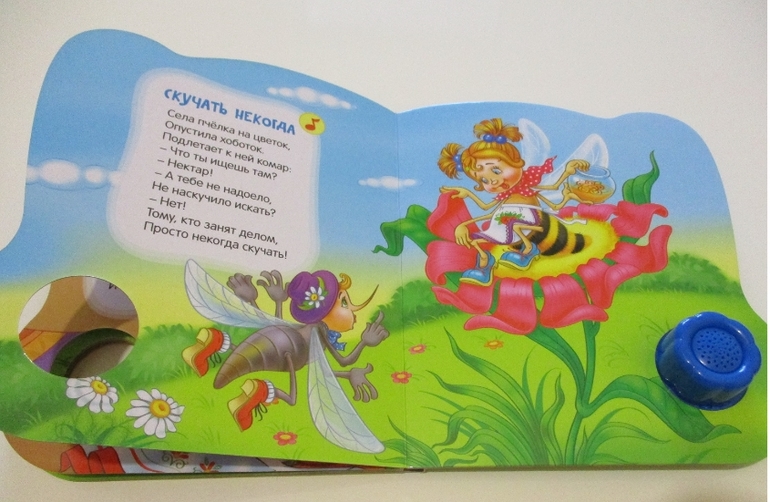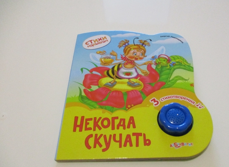 А еще у нас есть вот такая книжка - "Некогда скучать" из серии "Стихи детям". Как и все вышеописанные книги она достаточно яркая и интересная и состоит из 10 страниц. В книги 3 небольших стихотворения со звуковым модулем и отличные иллюстрации.