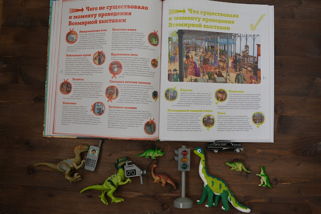 Развороты очень красочные, есть дополнительные вопросы (в основном формата "найди" или "сосчитай"). Энциклопедия выглядит потрясающе, нарядно и подарочно, стоит при этом недорого, как в общем-то все книги издательства "Питер". Очень они меня радуют демократичной ценой.