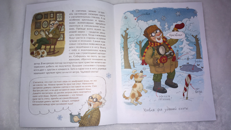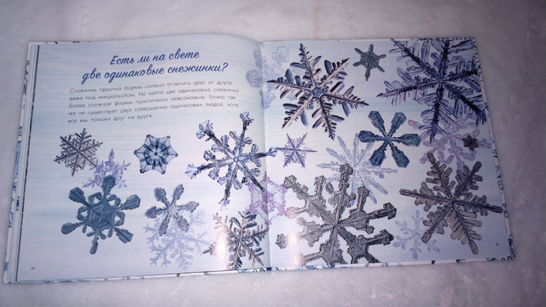 Например, из этой книги мы узнали, что самую большую в истории снежинку обнаружили в американском штате Монтана в январе 18877 года. Вы не поверите: она была размером больше альбомного листа! 😯