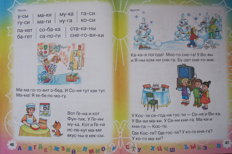 Но вернулись к букварю Олеси Жуковой для чтения текстов по слогам.