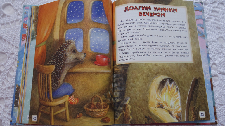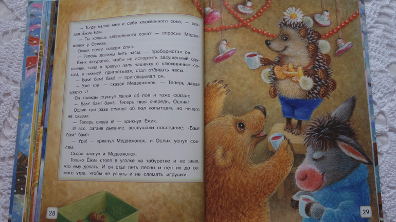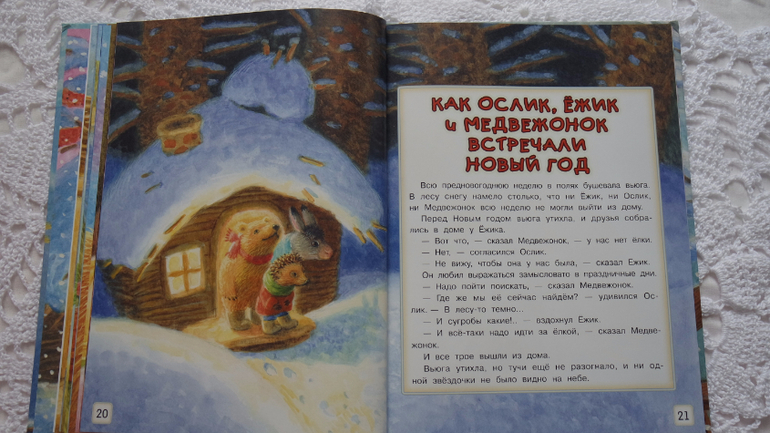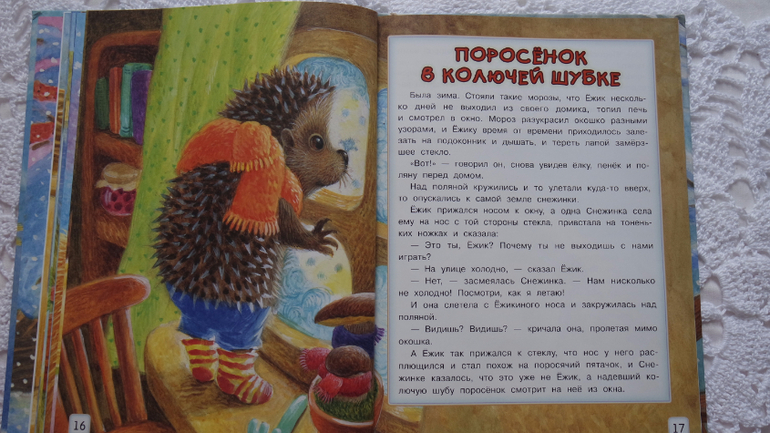 У Сергея Козлова очень трогательный юмор: медведь ест говорящие снежинки, снежинка играет со свинкой в колючей шубке, а доброго ёжика нарядили вместо новогодней ёлки!