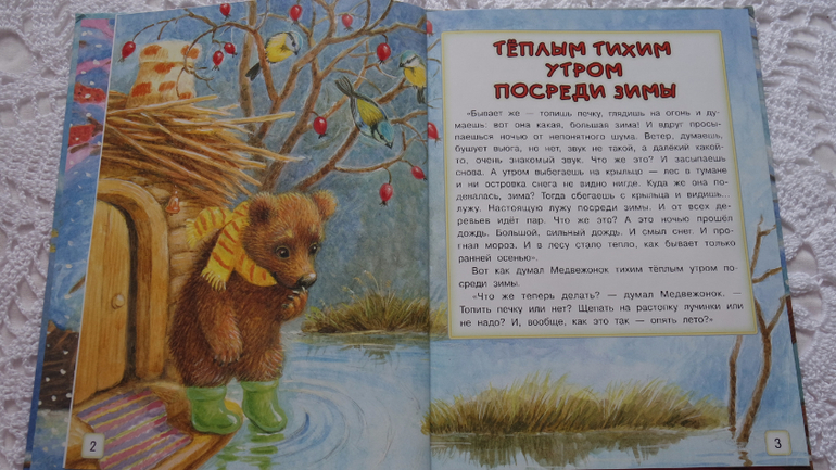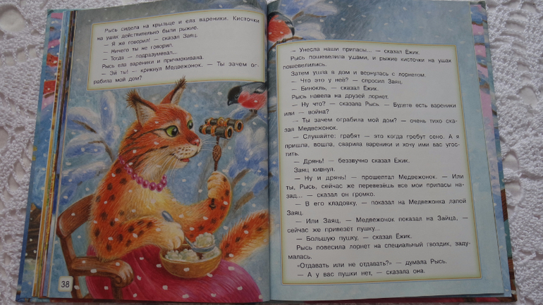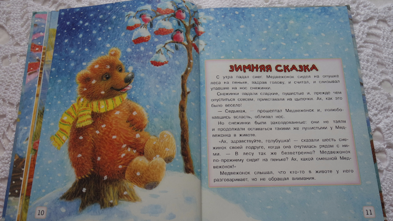 Обложка очень приятна на ощупь: снегири, рябина и название глянцевые.