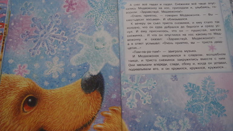 По книге легко объяснить малышу зимние явления: бушует вьюга, туман растаял, падал мелкий снежок, кружится снежинка, стояли морозы, выл ветер, намело сугробы, снег скрипит, мягкий снег...