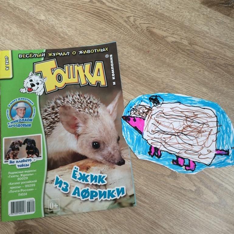 Эльвирка очень любит животных, и вот в одном из журналов , мы прочитали о ежах! И благодаря этому, у неё родилась чудесная семейка ежат, которые были заламинированы и участвовали в разных играх и спектаклях для братика. Для фото выдали только одного 😂