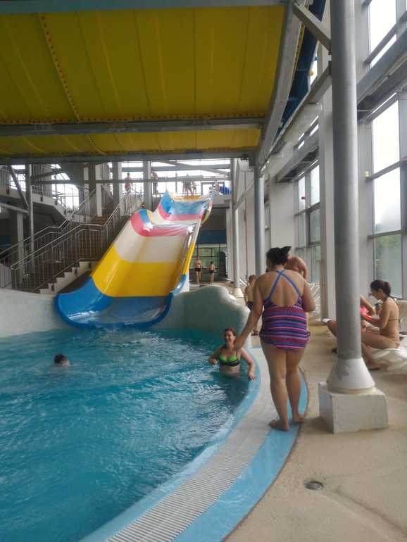 Зависит от того, как ребенок плавает и умеет ли задерживать дыхание при нырянии. Если да, то пусть катается. Моя с года в басик ходит, в 2,5 сама плавала и ныряла. Она поднималась сама на горку, а я ее ловила внизу, но уже после того, как она нырнет. Иначе никакого кайфа в этом катании нет)