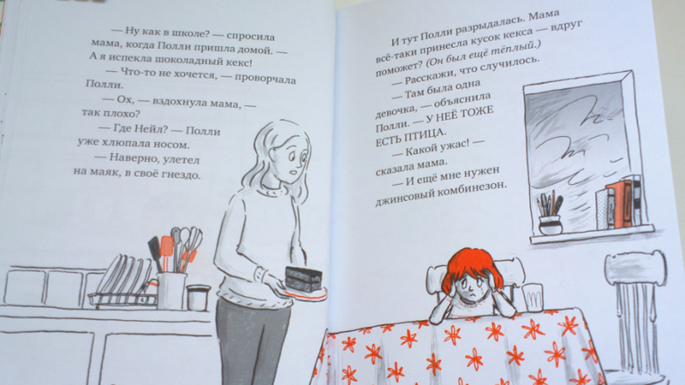 Эту книгу лучше всего читать после книги "Полли и Нейл". В первой книге мы познакомились с девочкой Полли, ее мамой и пернатым другом всей семьи- птичкой Нейлом.