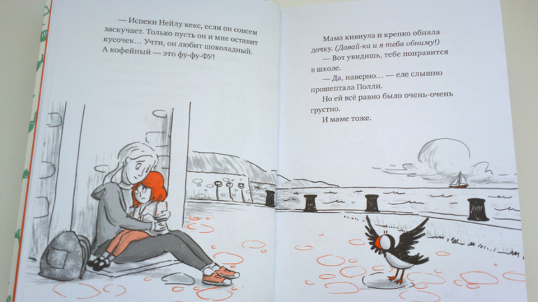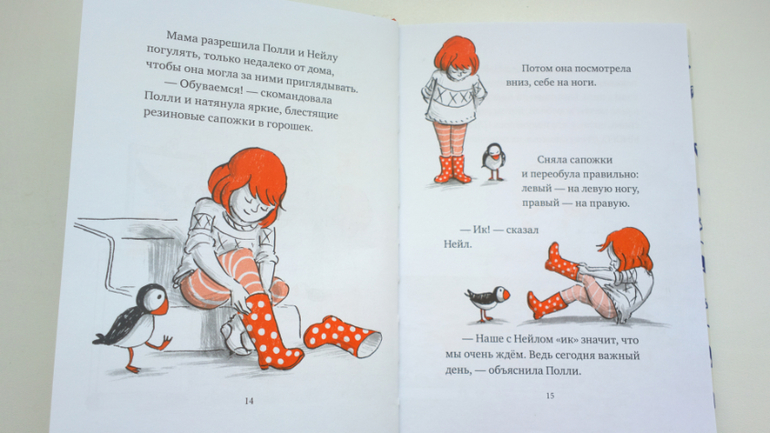В книге "Полли и Нейл" мы познакомились с рыжеволосой девочкой по имени Полли и с ее необычным питомцем- птичкой тупиков по прозвищу Нейл. Подробнее о книге я рассказывала уже (здесь)