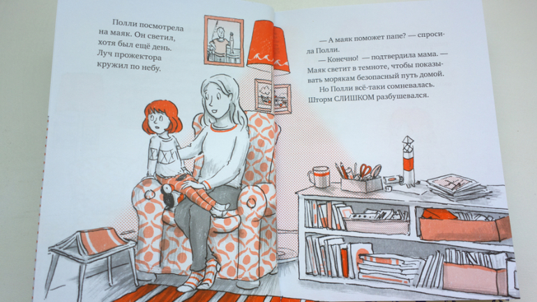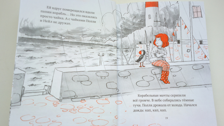 И именно в этой книге мы познакомимся еще и с папой Полли. Папа Полли рыбак, девочка вместе с мамой ждёт его дома, но его корабль попадает в шторм.
