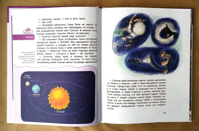 В «Увлекательной астрономии» есть небольшие задания, и с ними еще нагляднее. Например, можно воссоздать отражение Луной света Солнца с помощью фонарика и бумаги или побывать марсоходом.