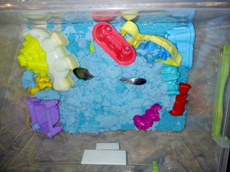 - Кинетический песок. Раньше был мегапопулярен "среди Василисы", постепенно интерес к нему пропадает. Но пока еще есть: