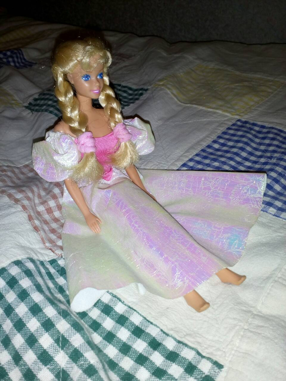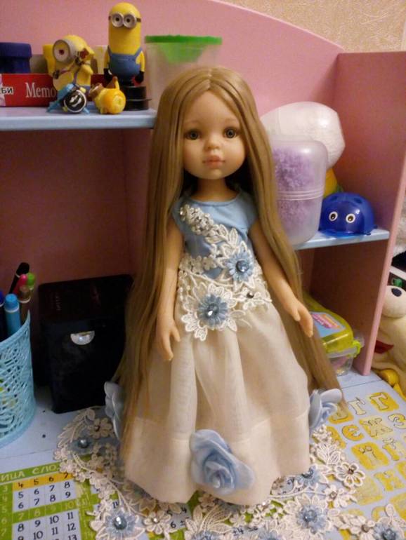 На грядущий день рождения Василька ждет еще одна кукла - испанская красавица Паола Рейна (модель Карла Рапунцель: красивый молд, длиннющие волосы, аромат ванили) в самодельном платье "от мамочки":