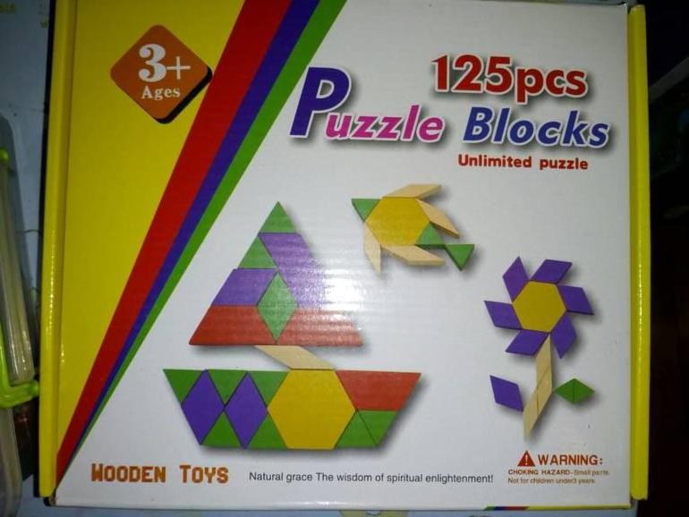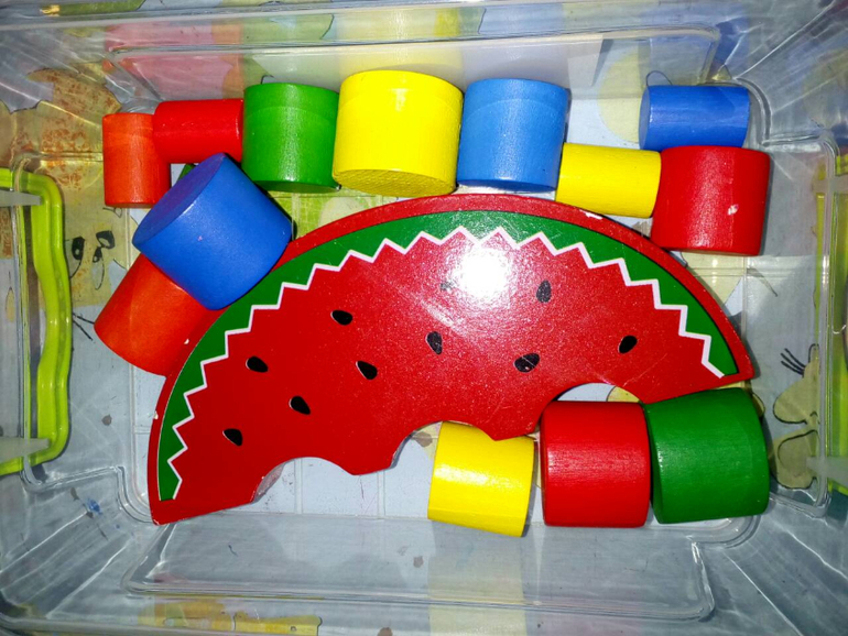 - Набор деревянных деталей. Такой себе усовершенствованный "Танграм". Складывает по шаблону с большим интересом: