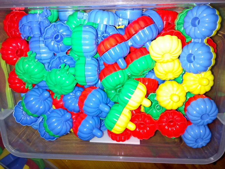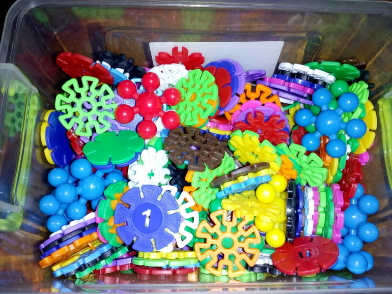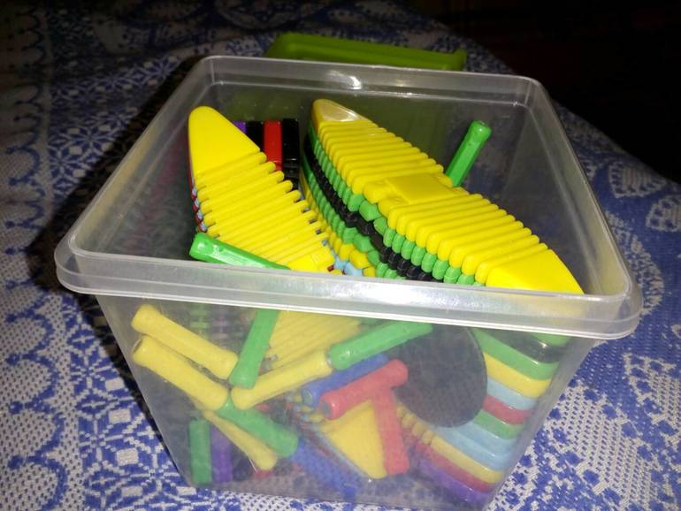 - Вот такой конструктор. Коробок нету, название не помню. Но он очень прикольный, к тому же, занимает мало места. Заинтересовал ребенка сразу, но не как конструктор, а как куча мелких деталек, из которых так удобно варить суп и обсыпать себя по-всякому))