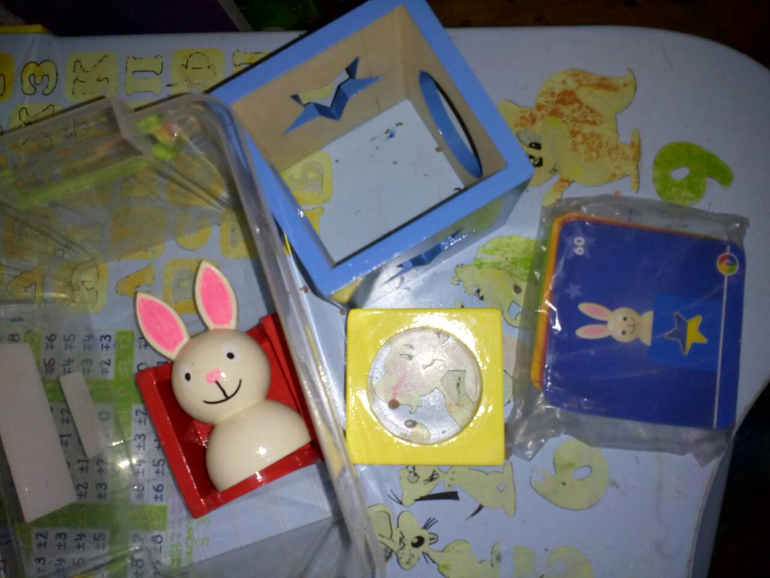 - "Застенчивый кролик", он же "Кролик Бу". И опять у нас не оригинал от "Бондибон" или "Смарт Геймс" (его днем с огнем не сыскать сегодня в Одессе), а качественная реплИка, сделанная мастерицей из нашего города. У нее есть и оригинал, при сравнении отличий не нашла, потому и купила. Вышло тоже недешево - 600 грн. Но оно того стоило! Деточка отлично складывает задания по карточкам, как простые, так и довольно сложные: