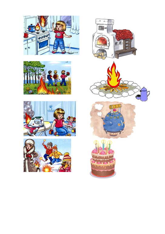 Посмотри на картинки и разложи их на две стопки: "Огонь-друг" и "Огонь-враг".