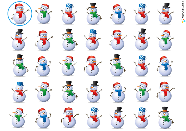 9. Выложи снеговичка из предметов (даётся набор разных предметов, например, верёвочки, пуговички, камушки, палочки и т.п.)