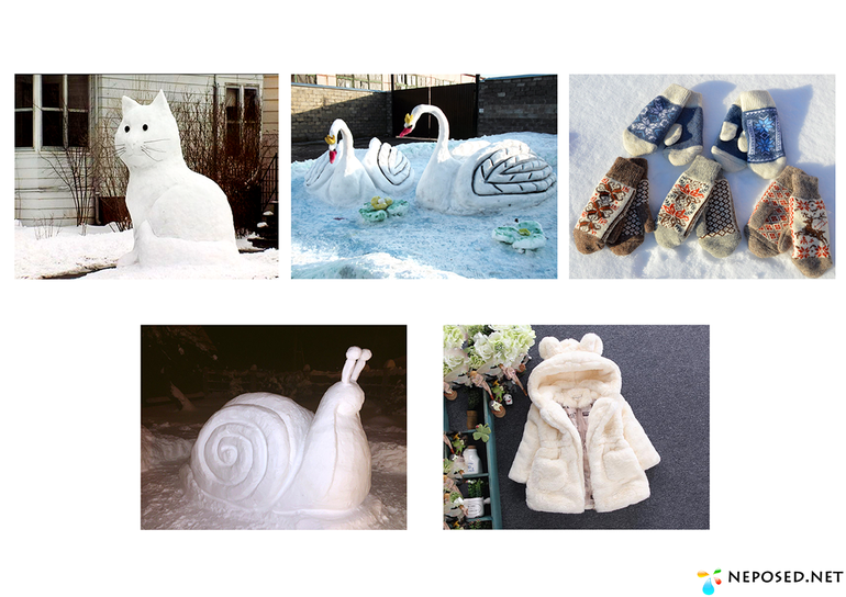 Весело ребятам зимой. Они сделали много снежных фигурок. Вадик слепил снеговика. Яна слепила лебедя. У Саши появился кот с зелёными глазами и длинными усами из соломы. Прибежала собака Жучка, увидела кота и громко залаяла "Не лай, Жучка!" - говорят ребята. - Этот кот не настоящий. Он снежный".