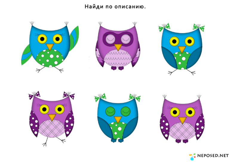 6. Эти совы замаскировались под геометрические фигуры. Назови их.