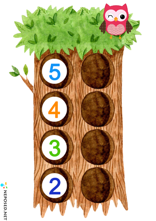 На этом дереве живут совы. На каждом ярусе живут 6 сов. Поставь числа в пустые окошки.