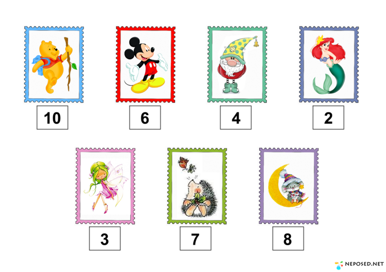 8. А ещё на конверт надо приклеить марку. У тебя есть деньги (монетки с листа выше). Посчитай сколько? Посмотри, под каждой маркой написана её стоимость. Какие марки ты можешь купить? Какая из них тебе больше всего нравится? Вырежи её и приклей на конверт.