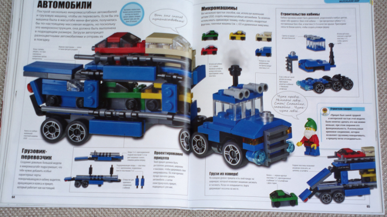 Да, подробных пошаговых инструкций по сборке в книге нет. Но есть подробные фотографии готовой модели, сделанные с разных ракурсов, которые и позволяют легко разобраться со сборкой. Это даже и хорошо: можно ребенка познакомить с такими понятиями, как вид сверху, сбоку, спереди. После таких тренировок у ребенка не будет в будущем проблем с черчением и пространственным воображением.