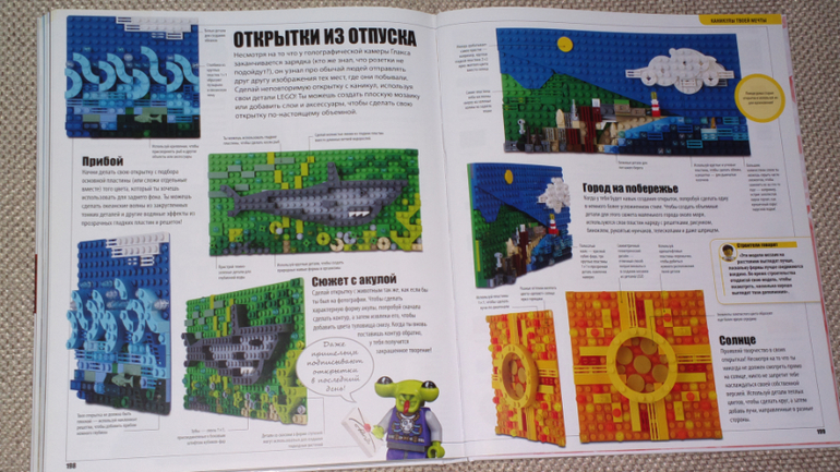 Много идей для строительства своих миров взял мой сынок из этой книги. Меня радует, что помимо готовых идей, эта книга содержит много полезной информации для юного лего-строителя.