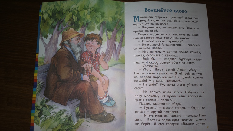 Я очень люблю такие книги, которые обретают вторую жизнь, когда в семье подрастает юный читатель.Теперь сынок уже сам читает рассказы. Вчера прочёл "Волшебное слово".