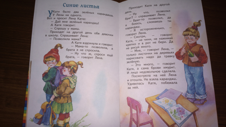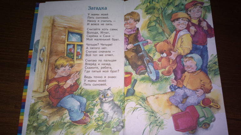 Важное замечание: в моей книге не проставлены ударения, а вот, например, в отзывах на Озоне родители жалуются на неверно проставленные ударения в словах. Будьте внимательны, когда будете покупать книгу- лучше взять книгу, как у меня, без ударений.