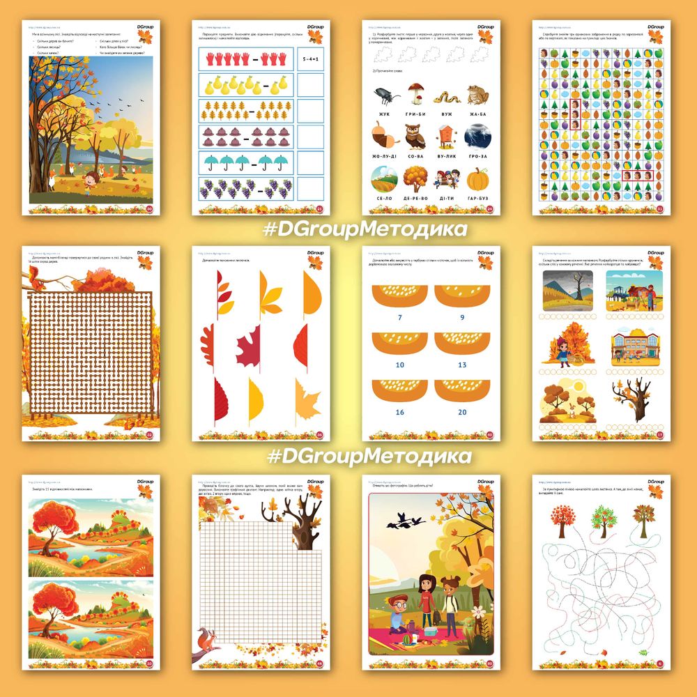 Готовимся к школеПрекрасный комплект по подготовке к школе на тему осени. Еще никогда не было так увлекательно обучаться читать и считать вместе с осенними дарами!