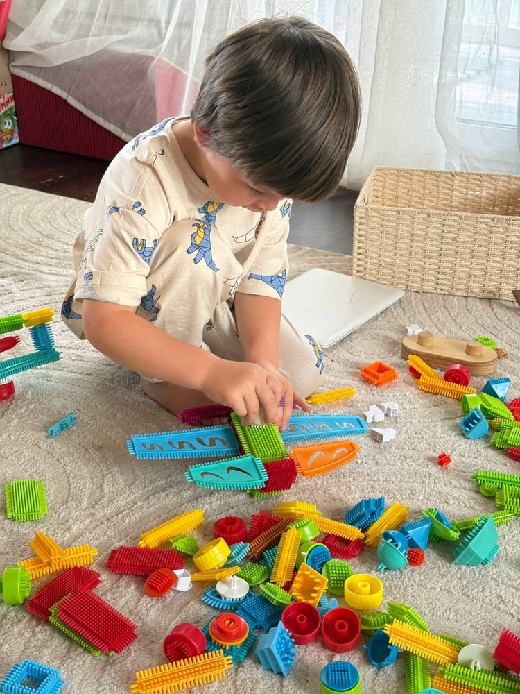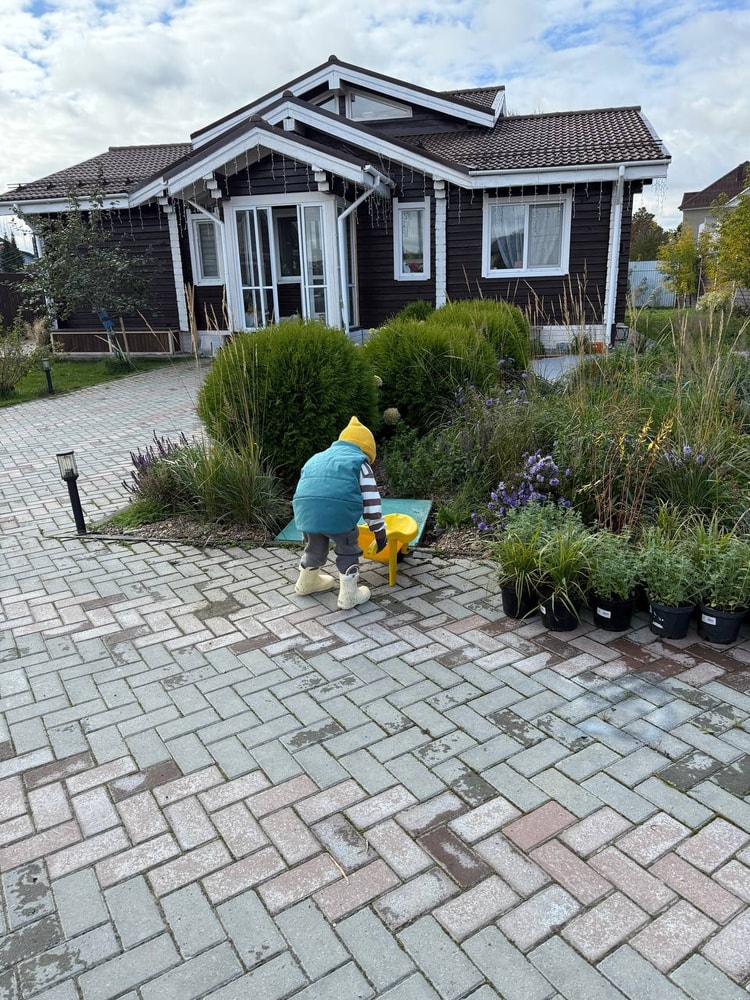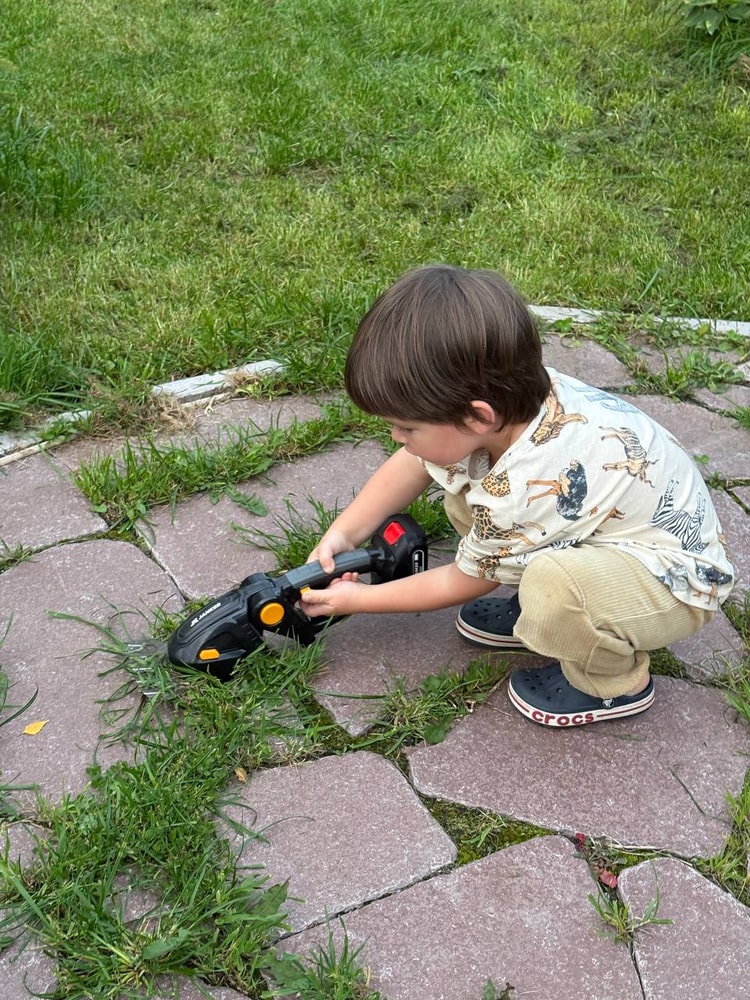 Из крупной моторики у нас была трудотерапия))) Пока я сажала и пересаживала свои цветочки ребеныш мой бродил с кусторезом и боролся с травой, а ну и цветы возил на тачке, старший брат приобщил его к складированию дров за баню и они бодренько кучку так перетаскали.