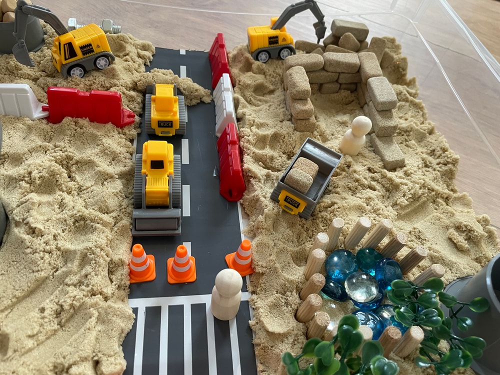 Я по этой причине только и любуюсь коробками, мой сразу все растащит по комнате, а песок и крупу поедет по квартире на машинках возить))