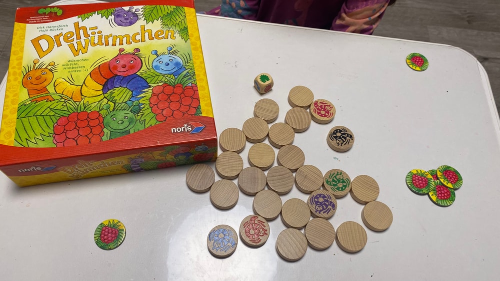 5. Играли на внимание и скорость в вертлявые червячки от Noris. Перед сном поиграли еще в кукареку от Ravensburger.
