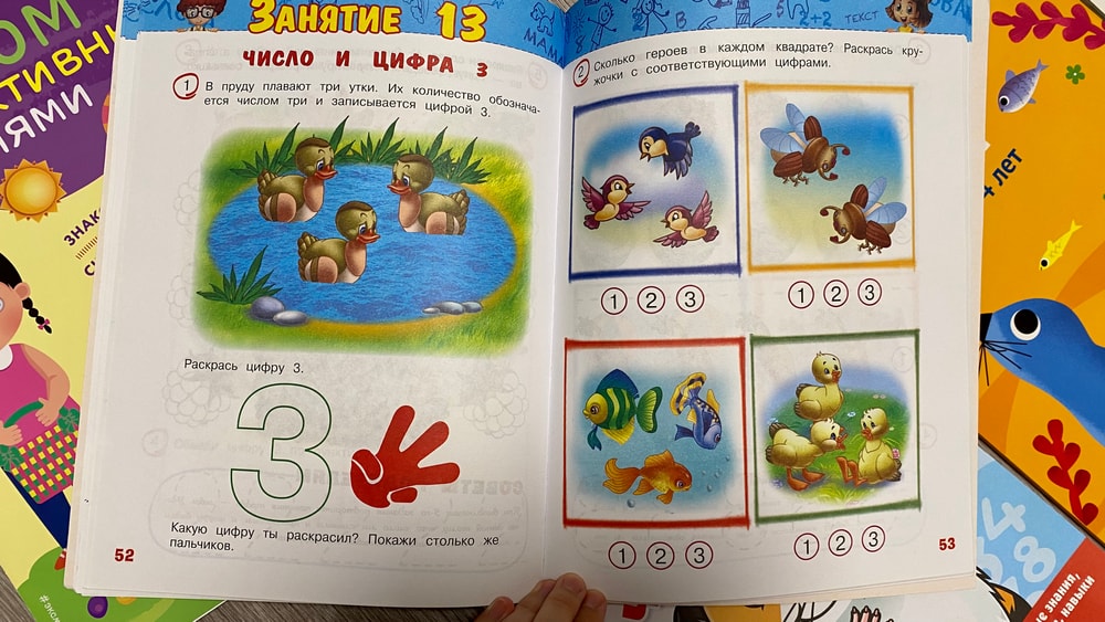 Пособие знакомит ребёнка с цифрами и количеством, предлагает задания на счёт, сравнение групп предметов и соотнесение числа с картинками. Страницы крупные и яркие, что удобно для детей и помогает удерживать внимание. Однозначно возьму еще 4-5 лет.